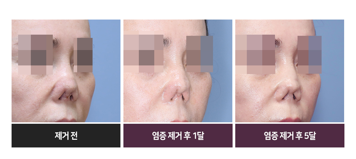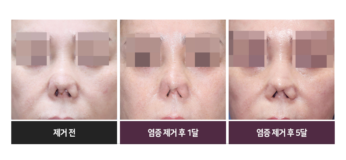Á¦°Å ¼ö¼ú Àü, ºñÁÖ¿¡ ¹æ¿ï¹æ¿ï ÀÛÀº ¸ù¿ì¸®·Î ºÙ¾îÀÖ´ø À°¾ÆÁ¾Àº ¼ö¼ú ÈÄ¿¡´Â ±ú²ýÀÌ Á¦°ÅµÇ¾úÀ¸¸ç, ºÎ±âµµ ÇöÀúÈ÷ °¡¶ó¾É¾Ò½À´Ï´Ù. Á¦°Å ¼ö¼ú ÈÄ 1´Þ ¸ð½À¿¡¼ ÄÚ³¡ ÇÇºÎ¿Í ¿¬°ñÀÌ ±¸ÃàÀ¸·Î ÀÎÇØ Âɱ׶óµé¸é¼ ÂóÈ÷°í °¥¶óÁø ¸ð½ÀÀ» º¸À̰í, ºÎ±â¿Í ºñÁÖ ³»Ãø¿¡ Èä»ìÀÌ º¸ÀÌÁö¸¸, Á¦°Å ÈÄ 5´Þ »çÁø¿¡¼´Â º×±âµµ ºüÁö°í ¿¬ºÎ Á¶Á÷ÀÇ »óŰ¡ Á» ´õ ºÎµå·´°í ¸Å²öÇØÁ³À½À» º¼ ¼ö ÀÖ½À´Ï´Ù.