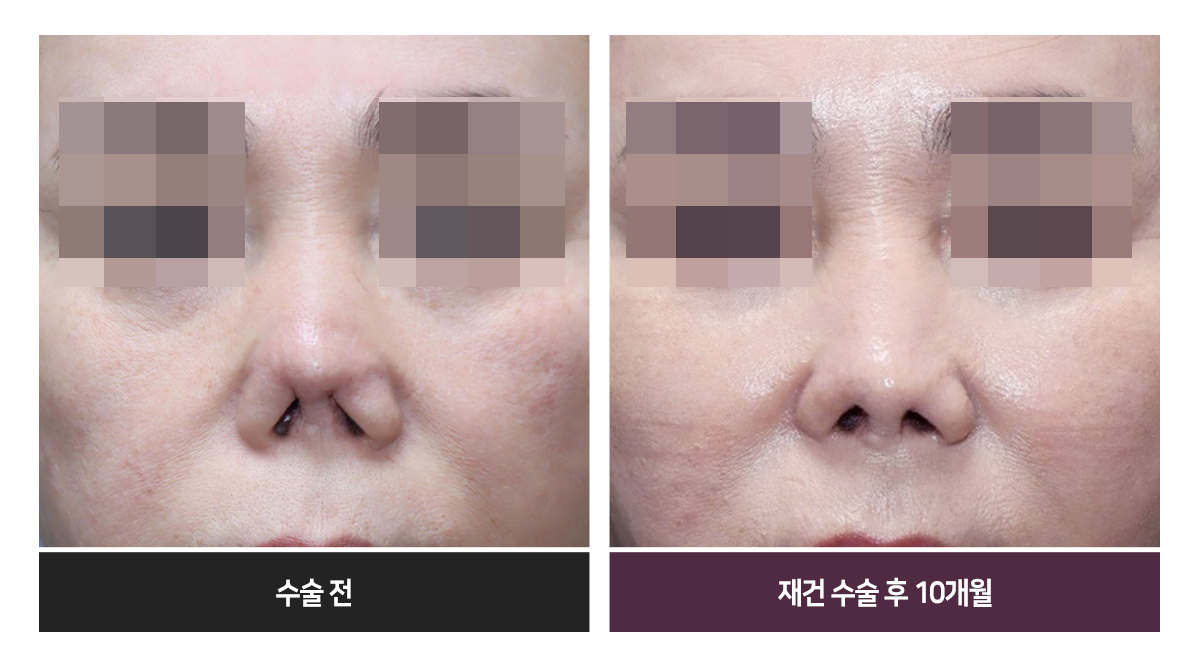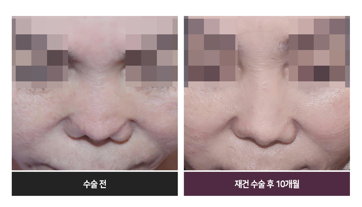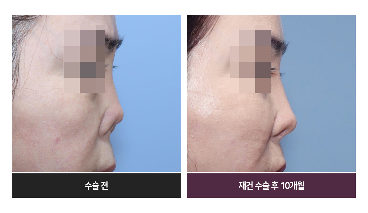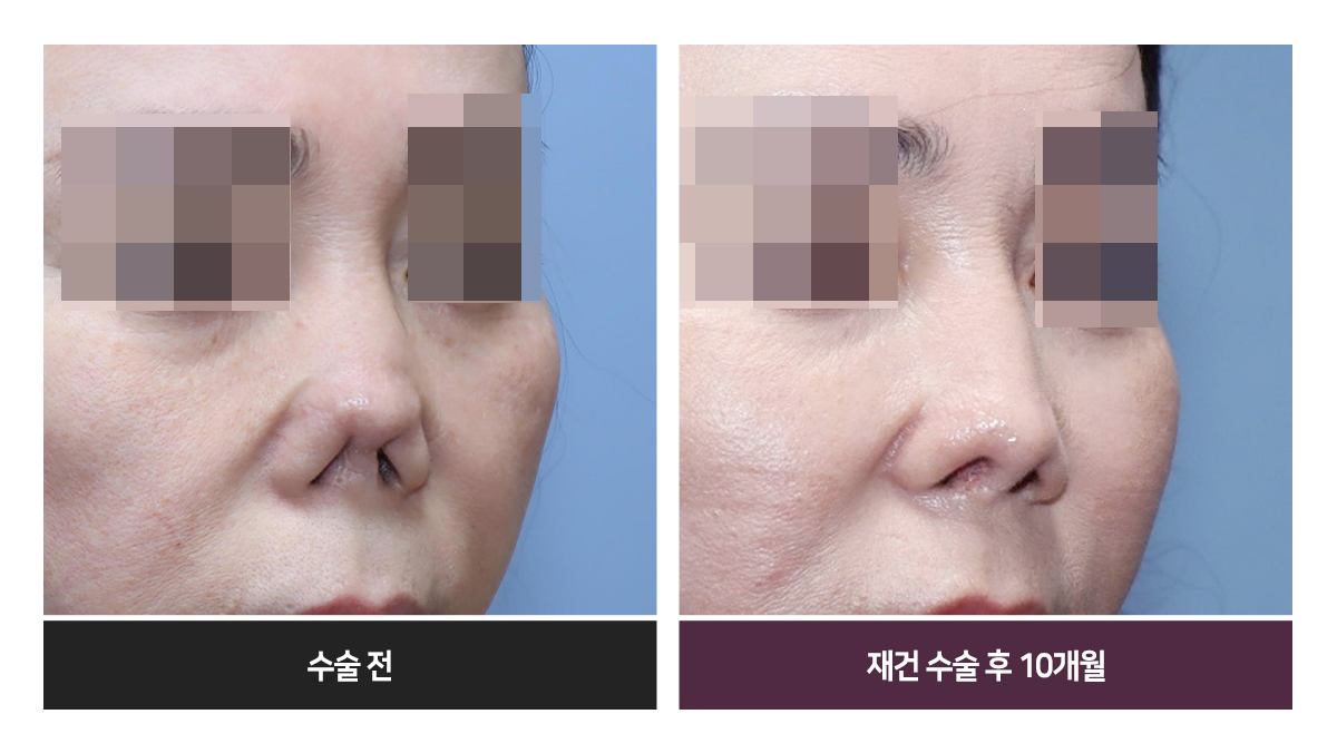Àç°Ç ¼ö¼ú ÈÄ, Äàµî ¼±°ú ³ôÀÌ, ÄÚ³¡ ¸ð¾ç°ú ºñÁÖ À§Ä¡ µîÀº °ÅÀÇ Á¤»óÀÎÀÇ ¸ð½ÀÀÌ µÇ¾ú½À´Ï´Ù. ÄÚÀÇ ±æÀÌ´Â Á¶±Ý ¾Æ½¬¿î Á¡ÀÌ Àִµ¥, ÀÌ´Â ÇǺÎÀÇ »óŰ¡ ³Ê¹« »»»»Çß°í ¸ðÀÚ¶ó¼ ÃÖ¼±ÀÇ °á°ú¶ó°í ȯÀںеµ ¸¸Á·ÇØÇϼ̽À´Ï´Ù.